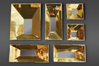A Stunning Set of Six Canted Framed Mirrors With Highly Polished Brass