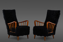 A Uniquely Upholstered Pair of Paolo Buffa Chairs in Black Kalgan Lamb