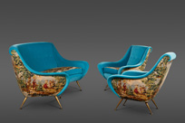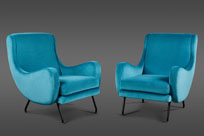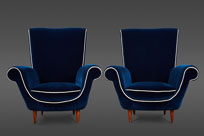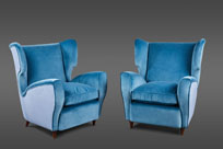 A Pair of Ico Parisi Attributed Blue Velvet Arm Chairs