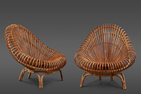 A Sculptural Pair of Italian Rattan Chairs in the Manner of Franco Albini