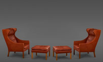 A Pair of Borge Mogensen Leather Chairs with Ottomans for Fredericia