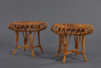 A Pair of Petite Sculptural Rattan Stools in the Manner of Franco Albini