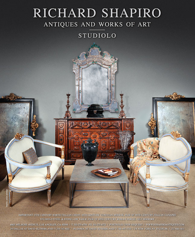 Featuring the Steel and Stone Table among a collection of exquisite antiques.