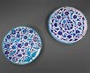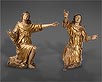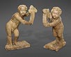 A Pair of Italian Blue, Yellow and Ivory Painted Wall Appliqués.