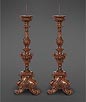 A Grand Pair Of Northern Italian Exquisitely Carved Walnut Prickets