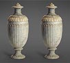 A Rare And Beautiful Pair Of Venetian Opaque Glass And Beaded Urns