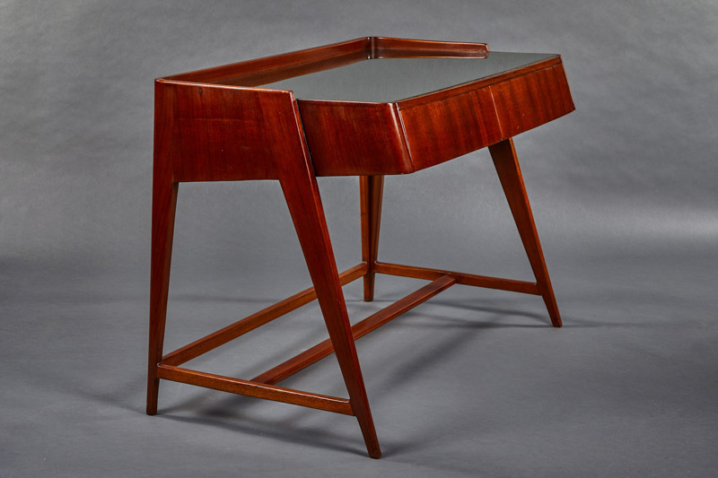 Lacquered mahogany, frosted glass Italy1960s31" H x 45" W x 23.5" D