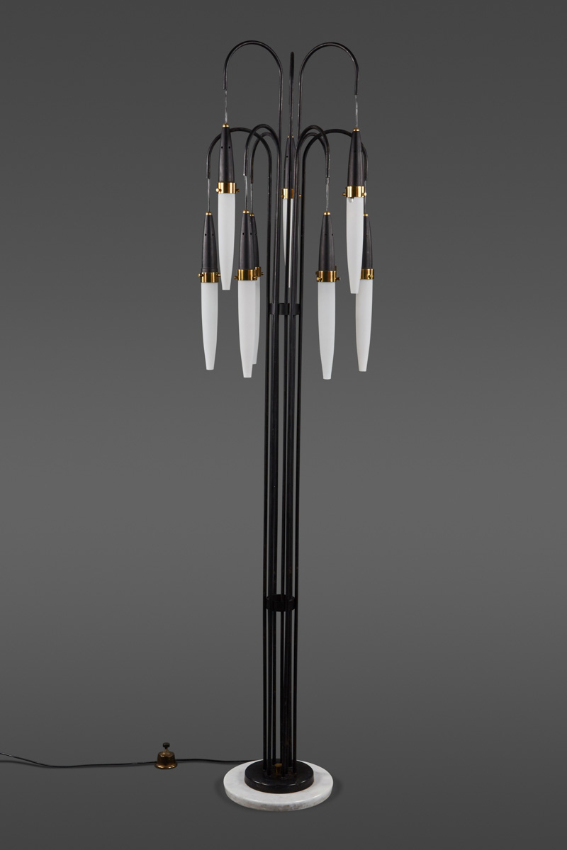 A Stunning Stilnovo Floor Lamp with Nine Cascading Pendant Lights of Opaline Glass(1963-40)