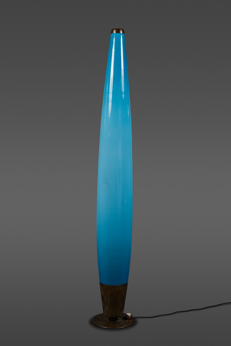 A Tall Uniquely Shaped Arredoluce Floor Lamp in Blue Opaline Glass with a Brass Base(1963-41)