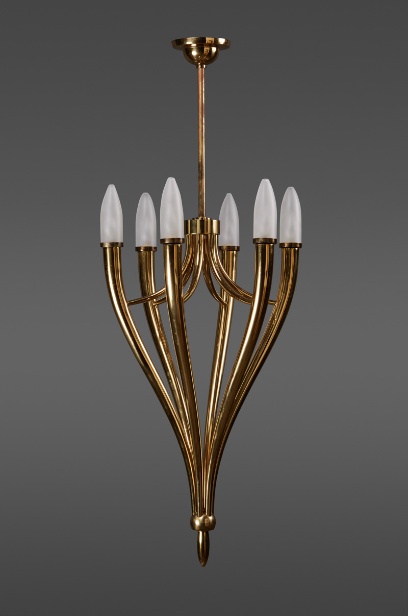 A Graceful Guglielmo Ulrich Chandelier in Brass