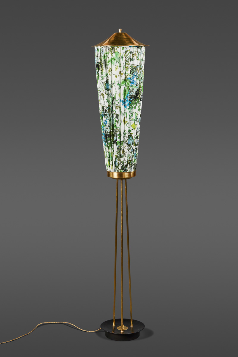 Fabric, brass and enameled metal baseItaly1950sH 62" x Dia 11"