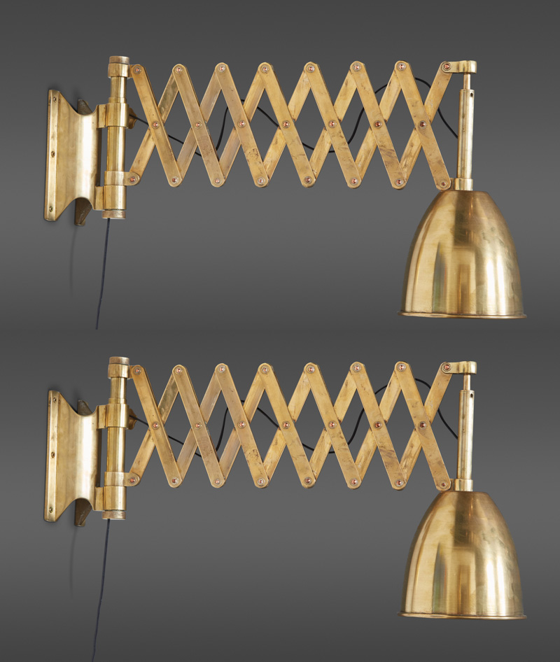 A Pair of Italian Brass Extendable Library Lamps