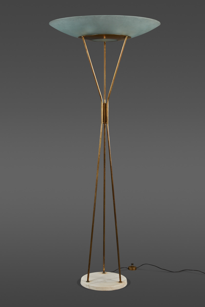 Brass, marble and sandblasted glass diffuserItaly1950sH 72.5" x Dia 39"