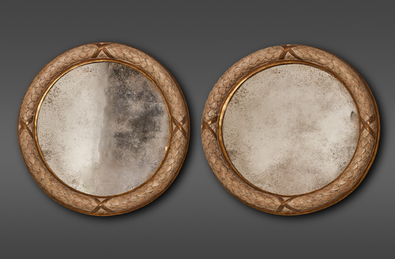 Pair of Stylish 20th Century Carved Circular Mirrors(1964-2)