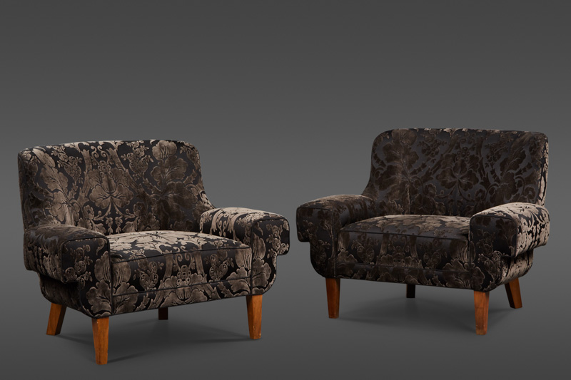 Damask velvet, woodAmerican1950sH 27.8" x W 36" x D 26"