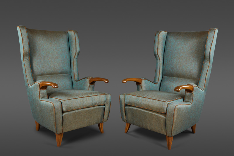 Wood, newly upholstered Manufactured by ColliItaly (Torino)1955H 43" x W 26" x D 27"