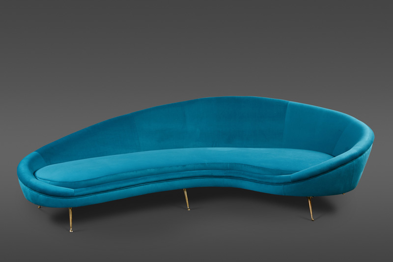 In turquoise velvet with brass legsItaly1950s28" H x 102" W x 34" D