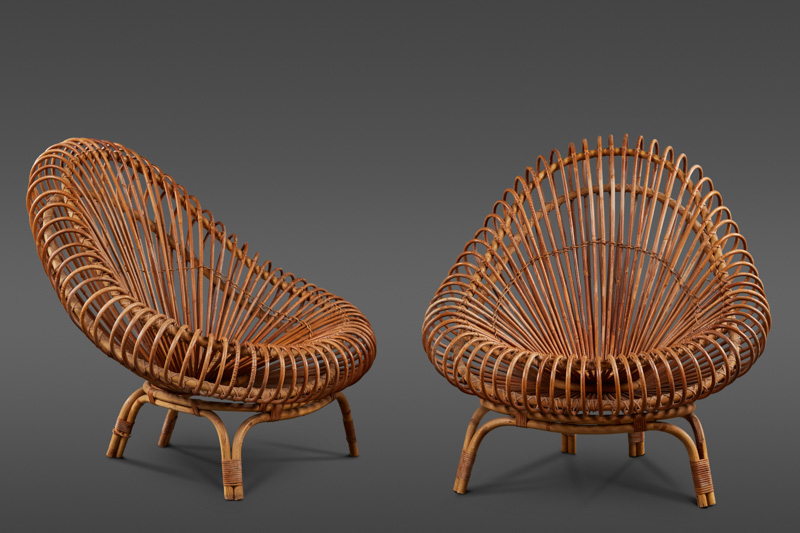 A Sculptural Pair of Italian Rattan Chairs in the Manner of Franco Albini(1961-58)