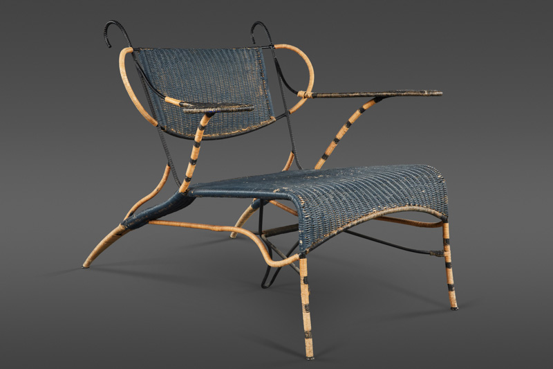 A Unique and Sculptural Italian Black and Natural Wicker Chair Over a Steel FrameExhibiting Influences of Carlo Mollino(1961-6)