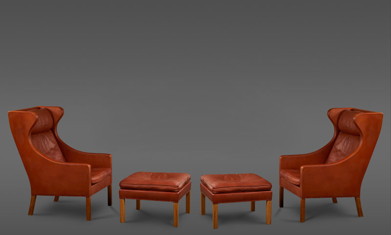 A Pair of Borge Mogensen Leather Chairs with Ottomans for Fredericia