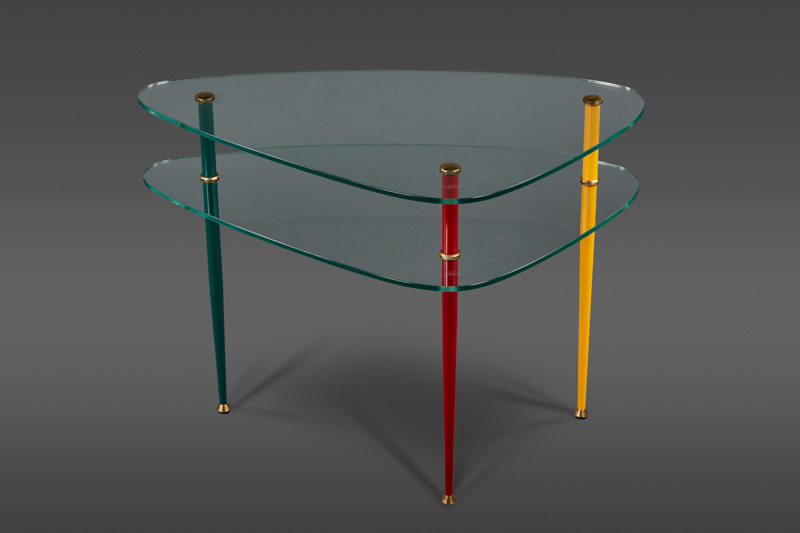 An Elegant Two-Tiered Triangular Glass "Arlecchino" Side Tableby Edoardo Paoli for Vitrex(1966-18e)