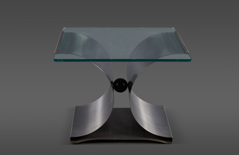 Brushed steel, glassFrance1970s15.5" H x 19.5" W x 19.5" D