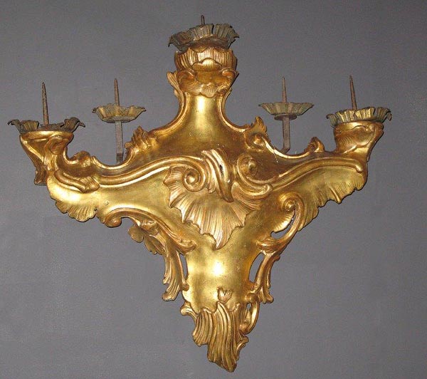 A Rare and Beautiful Pair of Louis XV Period Italian Giltwood Five Light Wall Sconces