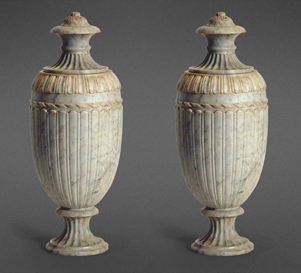 A Spectacular Pair of 19th C Italian White Marble Urns(701-74)