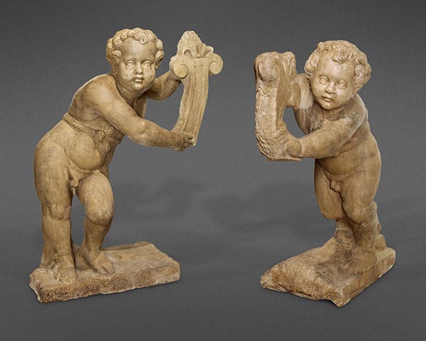 A Rare Pair of 17th Century Carved Stone Putti (703-77)