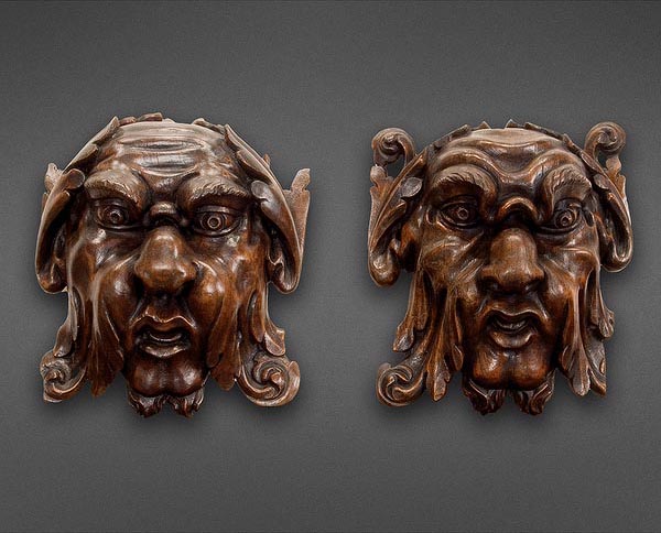 An Exhuberant and Striking Pair of Italian Walnut Masks(706-59)