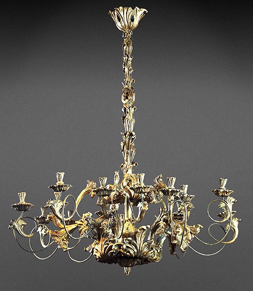 An Exuberant And Intricately Carved Italian Giltwood And Iron 10 Branch Chandelier