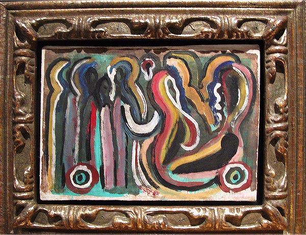 A CHARMING 1940’S ABSTRACT OIL PAINTING, NOW IN AN ELABORATELY CARVED GILTWOOD FRAME(1500-58)