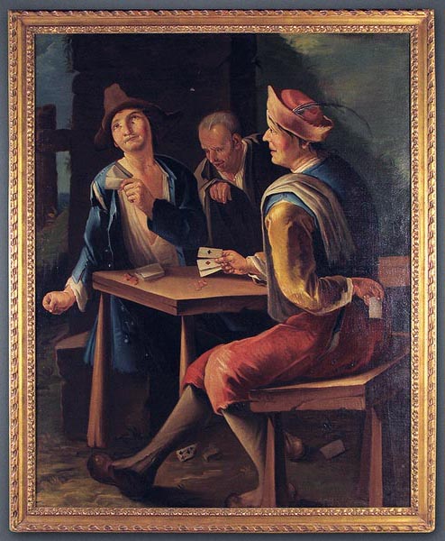 Born 1664 Austria, Died Milano 1736. Oil on canvas in gilded frame. Subject matter Card Cheat. Provenance: Private Collection Florence. Authenticated by Professor Ferdinando Arisi in his volume on Cipper.